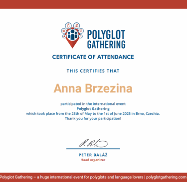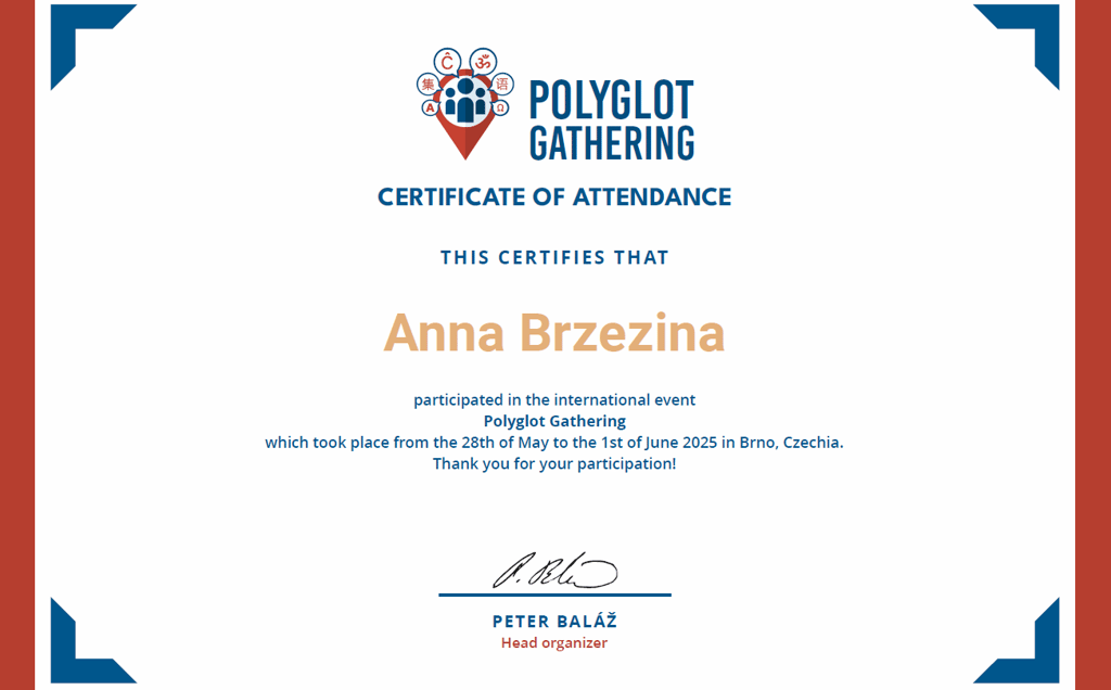 Czekamy. Czekamy na ogłoszenie kolejnego miejsca zlotu, bo jak na razie wiadomo tylko, że będzie w Europie, prawdopodobnie niedaleko Brna. Czekamy na ponowne spotkanie ze wszystkimi poznanymi na miejscu, pozytywnymi, językowymi wariatami. I czekamy na nagrania, które w okolicach września mają się pojawić na kanale wydarzenia na YouTube. Oczywiście zabieram się też za te wszystkie języki, których obiecałam się nauczyć. To będzie bardzo dobry rok.
