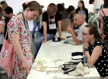 Żeby rozmowy płynęły w możliwie najmniej niezręczny sposób, każdy osoba otrzymuje plakietkę, na której zaznaczone są jej umiejętności językowe, od poziomu podstawowego, poprzez B i C (wykorzystywana jest europejska skala CEFR), aż po natywny. Dzięki temu nie musimy zaczynać rozmowy w losowym języku i liczyć na to, że współrozmówca nas zrozumie, trzymając kciuki za powodzenie tej misji. W intensywny sposób wpatrujemy się natomiast w klatkę piersiową tejże osoby, żeby wywnioskować po flagach i kodach ISO jakimi językami się ona posługuje.