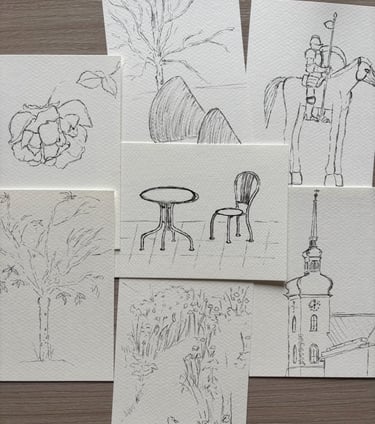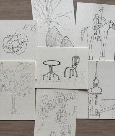 Jako że od zeszłego roku na każdy wyjazd zabieram ze sobą szkicownik, chodził, albo może bardziej spacerował mi po głowie pomysł, żeby go pokazać. Rozmawiałam z różnymi osobami i słowo do słowa, w 10 minut postanowiłam to zrobić. Pomimo głośnego krzyku w głowie mówiącego, że to nie ma sensu, bo przecież te moje bazgrolenie trudno nazwać sztuką.
